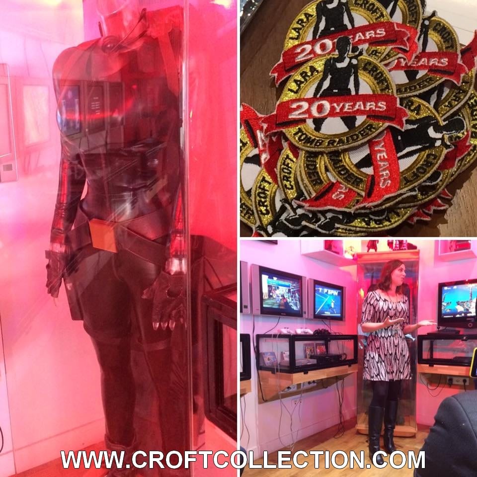 Afin de patienter avant le commencement de la présentation, on nous a offert de quoi nous désaltérer ainsi que quelques petites pâtisseries très appréciées. Meagan nous a mis entre les mains le fruit de son dur labeur : le livre « 20 years of Tomb Raider, digging up the past, defining the future ». Nous avons donc pu le parcourir du début à la fin. C’est un très beau livre avec énormément d’informations, beaucoup d’images et une présentation très soignée. Nous avons également eu la chance de pouvoir admirer de nos propre yeux la réplique de la tenue d’infiltration de Tomb Raider : Sur les traces de Lara Croft. Elle fut portée pour la promotion du jeu par le mannequin Lucy Clarkson et elle est soigneusement conservée dans une vitrine.