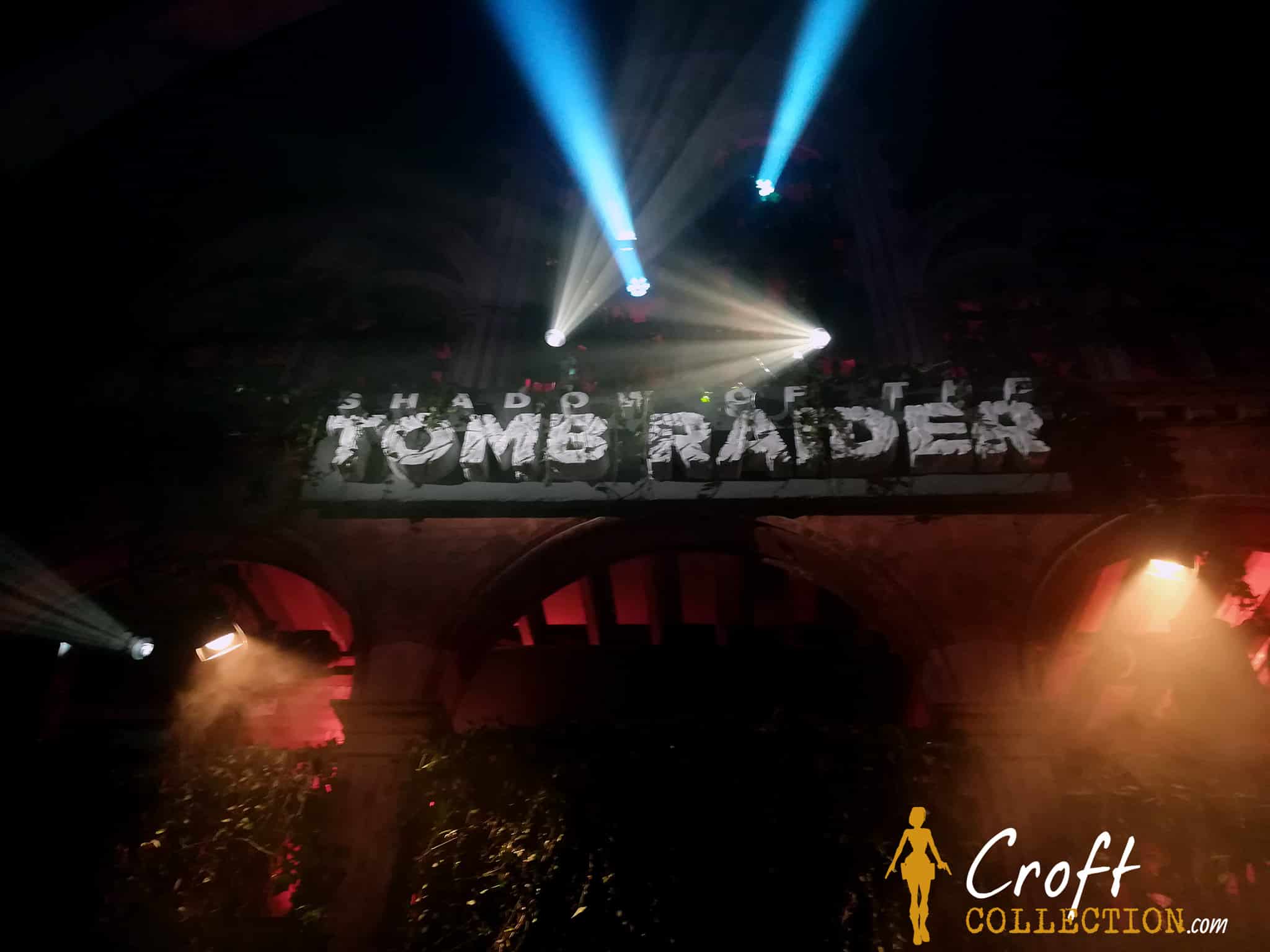 Au fond de la salle, le logo du nouveau jeu trône au dessus du DJ et du bar où les convives prennent un verre estampillé Shadow of the Tomb Raider.