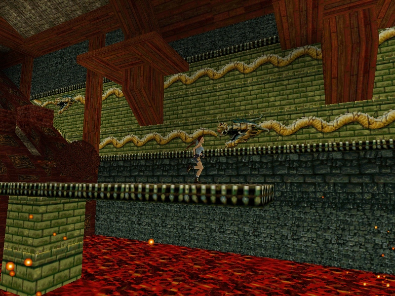 Une petite note par rapport au dernier secret de ce niveau, horriblement frustrant tant il est sournois. Franchement, les développeurs ont démontrés un certain sadisme sur ce secret-là ! Dites-moi qui va songer à aller explorer cette dangereuse salle quand il voit la porte de sortie à portée de main ? Personnellement, je ne l’ai su qu’en tombant bêtement de la tyrolienne et en remarquant une alcôve un peu plus haut tandis que Lara agonisait dans la lave.